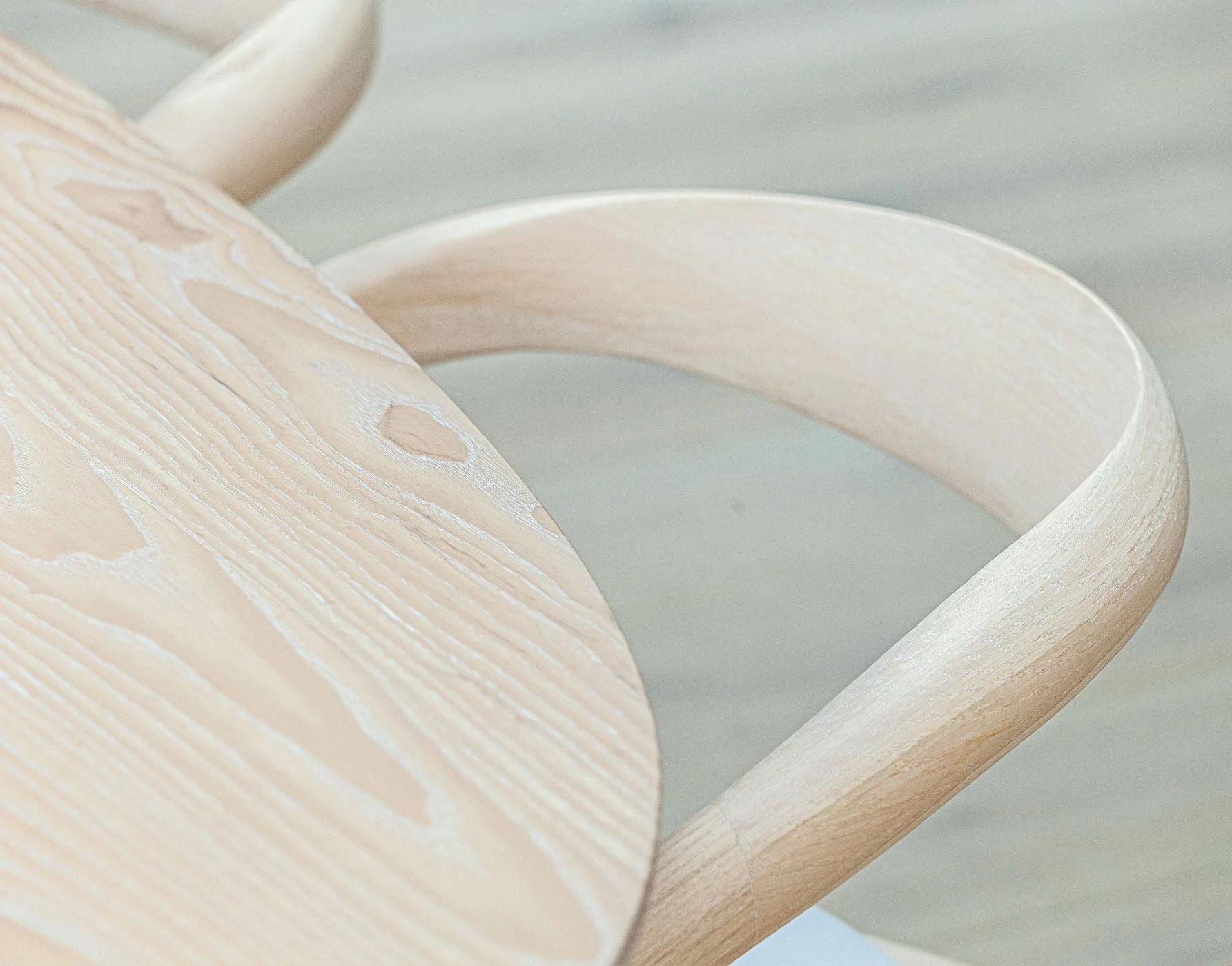 The Éasca dining chair is a handcrafted, ergonomic chair that allows good sitting posture and gives comfortable support to both arms and back. The name translates as free flowing chair in reference to the organic line and sensuous transition between legs, backrest, and seat. As part of the Éasca collection, the aim is to invite an intuitive response from people. As they interact with the work, conversation is created in that space.